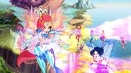 - El ataque de los Centauros: Lo utiliza junto con Rayo de Clorofila de Flora y Espectro de luz de Stella contra los Centauros.