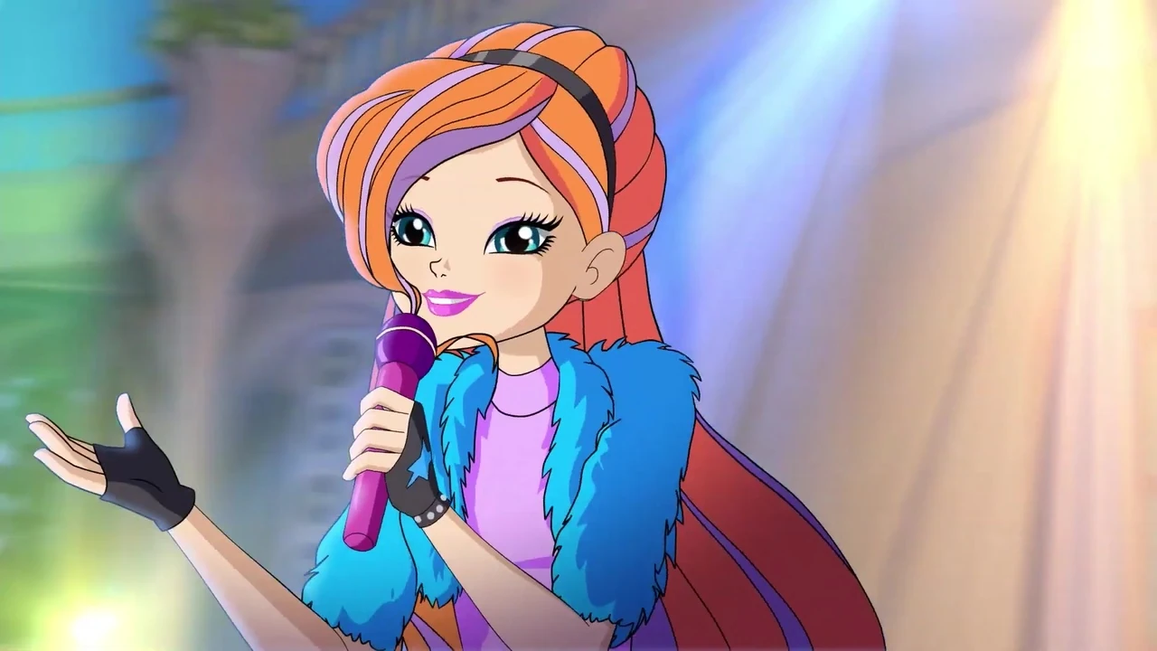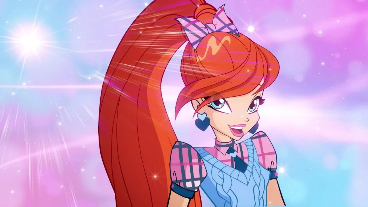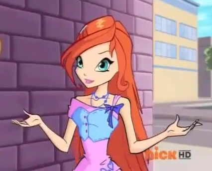 - En World of Winx regresó a su largo cabello asemejando en su peinado que tuvo en la 4ª Temporada. Su atuendo es una camisa de rombos negros, rosas y morado claro. Cinturón negro sin adornos, una falda rosa sin un color que le resalte, medias largas gris oscuro y zapatillas rosa claro que le hacen juego con su falda.