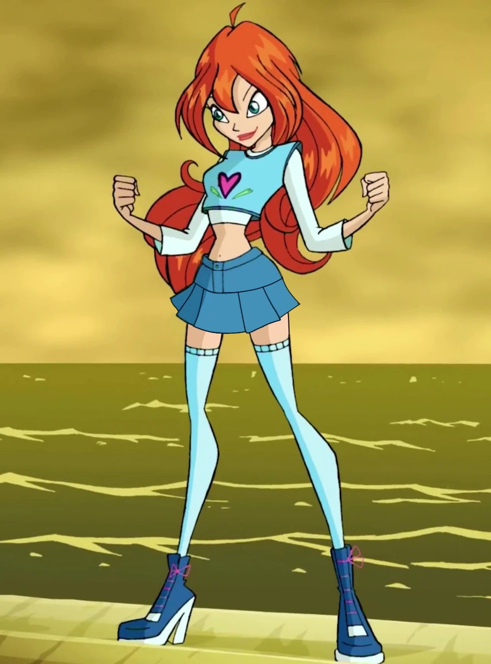 - En la 2ª y 3ª Temporada, lleva una camisa a rayas azules y blancas con pequeños corazones de color rosa, una minifalda vaquera, con calcetines azules por arriba de la rodilla y botas de tacón alto con encajes de color azul. A veces lleva una camiseta con un solo corazón en él.