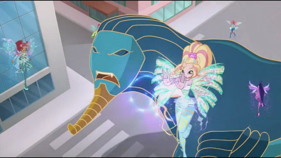 - El Ataque de la Esfinge: Lo utiliza para proteger a las Trix (disfrazadas de estudiantes).