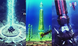 - Kolumna Kontroli emituje szalejące światło w kolorze fuksji na szczycie kolumny, a w pobliżu niej ma swój dom gigantyczny węgorz, pośrednio zapewniając mu dodatkowego strażnika.