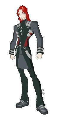 Nosi zbroję od stóp do głów, ma na sobie formę korony, a pod zbroją ma na sobie długą tunikę.