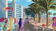 As Winx lutam contra a esfinge, e as Trix dizem a Daphne que as proteja porque estão num balão, e Daphne protege-as numa esfera. Então as Trix decidem atacar, e fazem com que uns humanos fiquem parados. Um cão está prestes a ser atacado pela Esfinge, mas Stella faz com que os humanos acordem e uma mulher salva o cão. As Trix zangam-se.