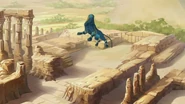 - A Esfinge aparece com a sua barba, tanto em pedra como na sua forma mágica. Mas a sua barba foi partida há muitos anos.