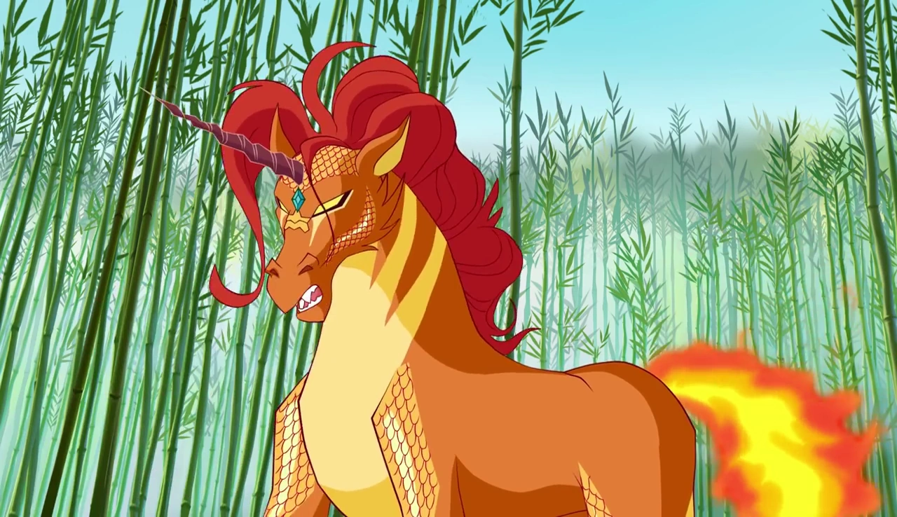 Când Winx l-au văzut pentru prima dată acesta era sub influenţa magiei sălbatice care l-a transformat într-o creatură între unicorn şi dragon având solzi portocalii şi o comă roşcată.
