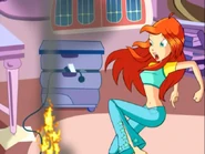 Întoarsă la Alfea, ea se apucă să îşi ajusteze rochia, când îşi dă seama că are nevoie de foarfece. Cum nu a găsit foarfece la ea în cameră se duce să le ia dintr-o magazie, dar ajunge defapt într-un tunel subteran de unde aude voci. Ea recunoaşte vocile ca aparţinând lui Trix şi fuge să se ascundă. Curioasă ea le urmăreşte şi află de planul lor de a distruge petrecerea şi de produce panică între zâne prin vrăjirea codurilor aduse de Specialişti.