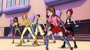 In the PC version of the game Winx Club, her outfit is different. She wears a dark green crop top, dark maroon overalls, and black boots.