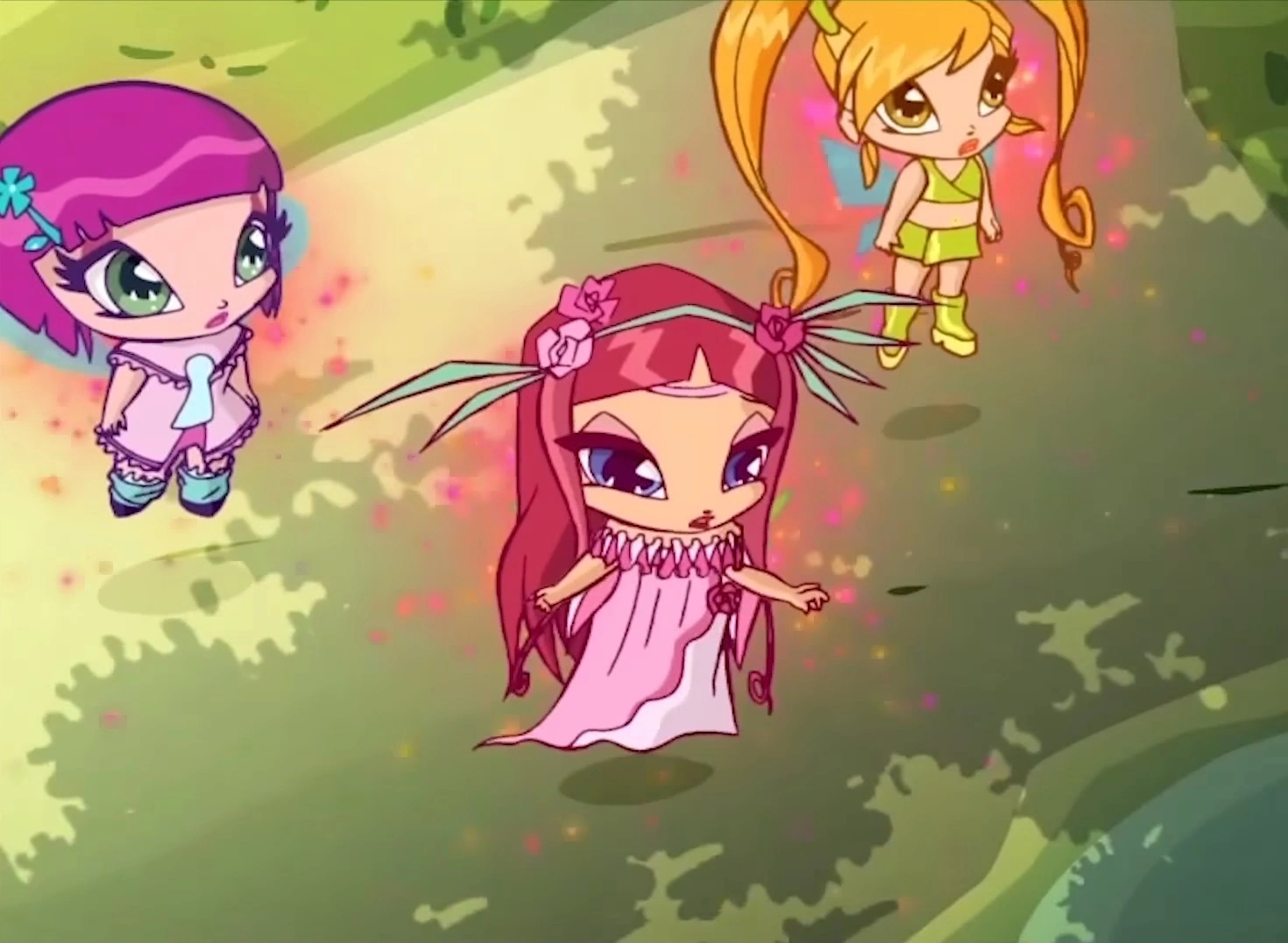 Her very first appearance is when Aisha tries to save the pixies. Sadly, Aisha could not save any of them except Piff. She is later saved during the Winx's rescue mission. She, along with the other pixies, becomes a refugee in Alfea. Even though they are spellbound by Darkar to be homesick, so they would return to Pixie Village, the Winx are successful in both disenchanting them and keeping them away of Pixie Village. She saves Brandon from Queen Amentia. When the Winx meet Helia, Chatta and Amore are thinking the same thing, as Flora introduces herself to him. At the end of season 2, she states that she had thought that she had bonded with the wrong fairy. Also, she helps the Pixies of the Codex to keep the portal to Relix open.