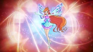 In Bloom's redesigned Butterflix, her bangs have been extended and curled. Her butterfly hair accessories have been recolored deep blue. Her eye shadow had been changed from light pink to pale blue and she no longer wears deep blue mascara on her lower lashes. She gains another wristband on her left arm. Minor sections of her outfit has been recolored. Her skirt is also smaller in size as of this season. Her stilettos have been changed to spool heels with simplified details. Some minor shapes on the bodice of her dress have been altered or completely removed. Some of the patterns on the bodice of her dress (mostly at the back with just a little peeking out from the front) have been altered as well.
