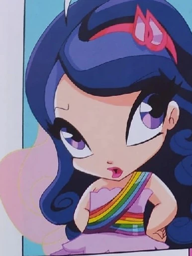 She seems to be hopeless romantic too, as she went to Amore's love shop to buy a love potion out of desperation, hoping to win the heart of the pixie she fell in love with despite his heart belonging to someone else. She is deeply heartbroken that the potion did not and will not work. Showing that she too, in spite of having everything, is susceptible to emotions and also feels them deeply, perhaps the most out of all her pixie friends. This also shows she judges others based on their personality and not for their fame, fortune, or looks, as she fell in love with this pixie because of his sweetness, kindness, and caring nature.[3]
