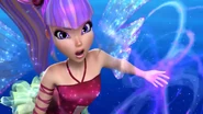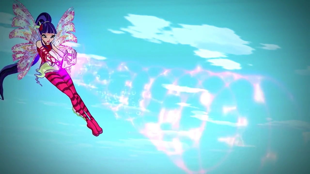 Deafening Chord is a Sirenix offensive spell used by Musa. She shoots a fuchsia-colored ball that releases purple, visible, hyper-sonic sound waves to the target; or she creates a purple ball of energy and launches it at the enemy; or she shoots a swirling pink sound waves around her hand or her whole body and releases it towards the enemy.