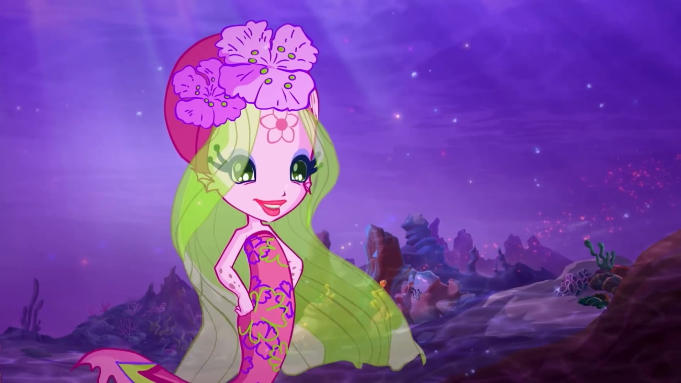 She is a good-hearted, caring, sweet and a very kind Selkie, who loves and favors all of nature just as much as Flora. She often decorates the underwater ocean with flowers and plants.