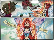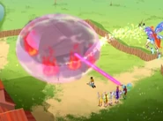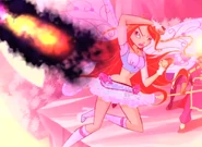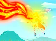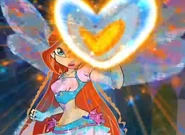 Flaming Armor is a Believix defensive spell used by Bloom, in which she either forms a blue heart shield with an orange heart inside, a red round shield, a clear and colorful aura that wraps around her body, or shoots a white energy beam capable of absorbing fire.