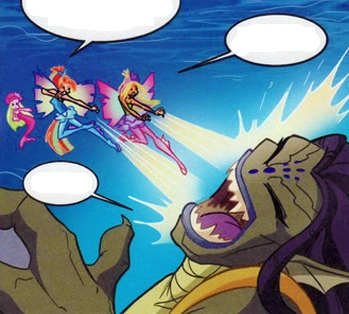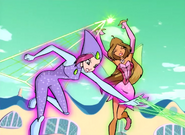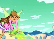 Floral Whirlpool is a Winx/Sirenix offensive spell used by Flora. She forms a green energy sphere in her hand and throws it at the enemy.