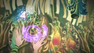 Harmony Blast is a Bloomix special/strategic spell used by Tecna. She creates purple speakers, which act as amplifiers, around the enemy.