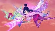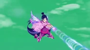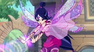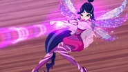 Infinite Echo is a Bloomix offensive spell used by Musa where she releases a vortex-like or crescent-shaped purple sonic beam of energy at the enemy.