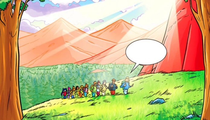 - On page 35, when Timmy, Sky, Tecna and Helia find the random volcano, Sky's pin is yellow instead of blue.