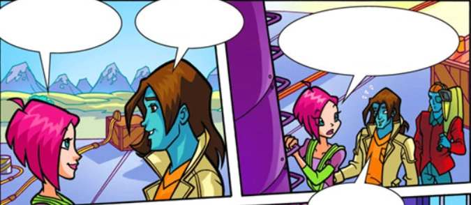 Tecna manages to convince her father to go with her friends and the Specialists to the planet, claiming that it is a good opportunity to analyze the situation together. Tecna asks her father to greet her mother for her and says goodbye. Once the king is no longer listening, Bloom scolds Stella for butting into the conversation and downplaying the collision, but Stella defends herself by pointing out that she did not send the asteroid and that they can take advantage of it as a short vacation. Flora intervenes to reassure Bloom, stating that not only will it be a period of rest, but they will also help save an entire planet. Meanwhile, the Black Comet continues its course through space, getting closer and closer to the planet.