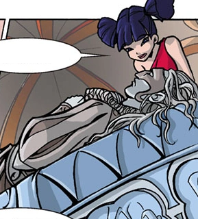 During their search, Tecna gets distracted while thinking about Timmy, which cause her to fall off a cliff. Luckily, Timmy appears just in time to pull her back up to safety and, though she is confused by Timmy's appearance, Tecna is ecstatic to see him. The two of them have a moment together, where Tecna ultimately admits to being in love with him, and the two prepare to kiss until Musa interrupts them, wondering what Tecna is doing with King Nobody. This causes Nobody to reveal his true appearance, which greatly enrages and upsets Tecna, prompting Musa to scold him. King Nobody tries to make Tecna feel better but she is too upset to face him. Soon enough, Bloom, Stella and Flora join up with the trio and King Nobody is formally introduced to the Winx Club, during which he reveals that he is the last of his people.