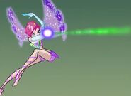 Laser Cage is an Enchantix defensive/offensive spell used by Tecna. She shoots a green/yellow green beam towards the enemy, trapping it in a green cage or round chains.