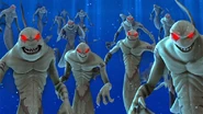 Having been forcibly transformed, the mer-monsters' eyes change color and they become much more hideous compared to their original appearances.
