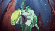 The Mutant are Tritons (sometimes mermaids) that were turned into monsters by Tritannus' pollution-magic. Their upper body has an ill colored skin tone with many wrinkles to their face and transparent flaps beneath their arms. They have a reptilian appearance and is warrior type, with a shield attached to their right hand. They have yellow eyes and sharp teeth.