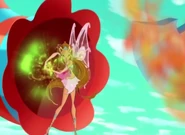 Nature Dust is an Enchantix strategic/special spell used by Flora, in which she shoots a green beam that changes objects into a confetti of pink flowers.