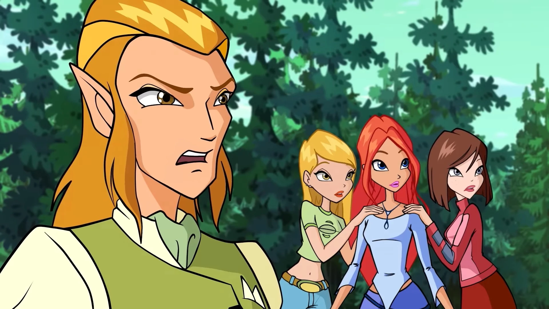 In "The Company of the Light," she gathers around the Winx as they are transported into Alfea's courtyard.