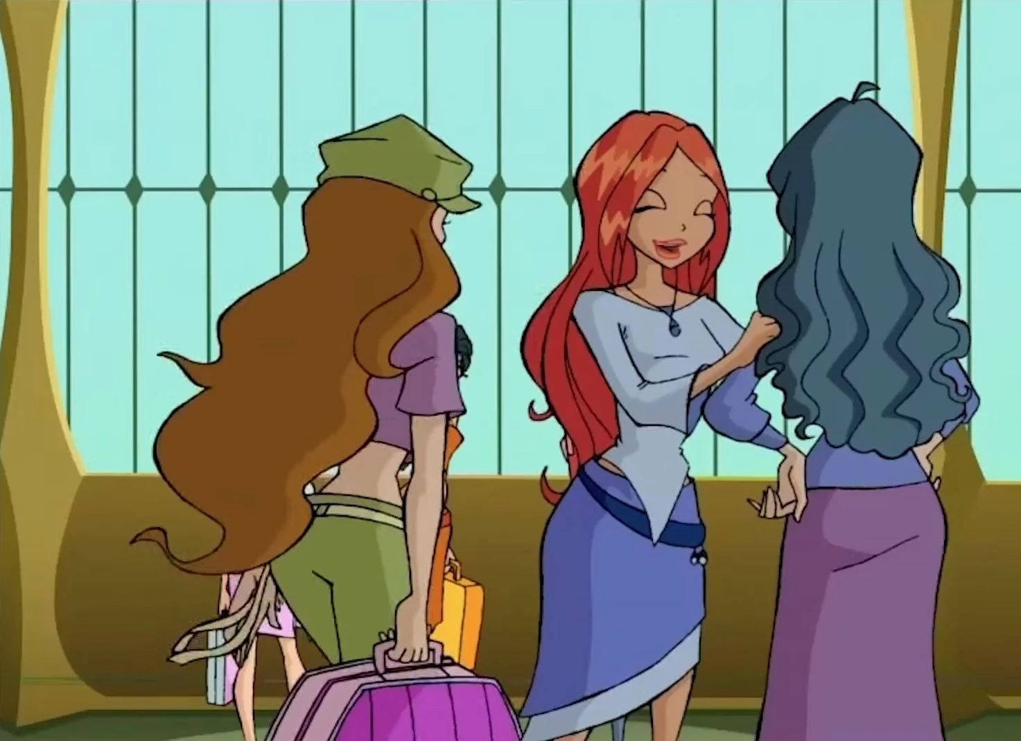 In "Fury!," she is seen in Alfea's courtyard taking to Ahisa.