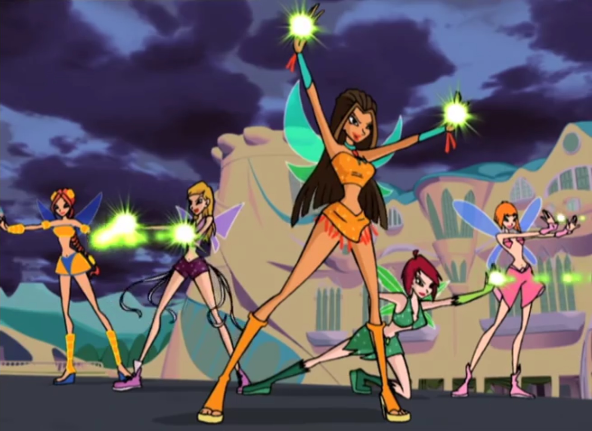 Silicya (on the left) and her classmates defending Alfea.