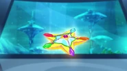 The Sirenix Book told the Winx to find the Flower of the Depths. Flora, Stella and Musa searched for it in the ocean of flowers. With the help of Desiryee, the Gatekeeper of Linphea, they located the Flower of the Depths. They healed it from pollution and it told them, that the next clue will be given by the book. The book told Tecna and Musa that the next gem is in the Yellow Reef in the ocean of Domino. The two informed the others to find the gem. Bloom, Stella, Flora and Aisha, who are in Domino, were forced to go to the Yellow Reef. With the help of Serena, the Gatekeeper of Domino, Desiryee, Illiris and Phylla, the Gatekeeper of Earth, they located the Yellow Reef, which was polluted. After reverting the spell, they saw the gem in the mouth of a giant shark. Bloom defeated it and acquired the Gem of Courage.