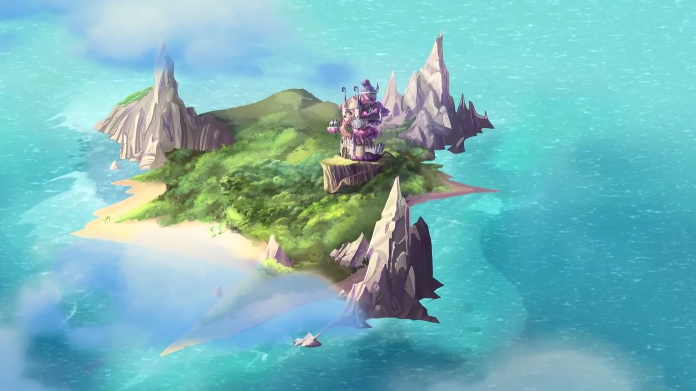 The island first appeared in a vision when the Winx used their Tracix wings in "A Virtual World", but the Winx did not go there until "The Enchanted Island", to free the Fairies of Earth. The island was not seen again until "The Day of Justice", when the Winx brought the Wizards of the Black Circle there for the trial.