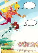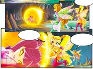 Total Eclipse is a Bloomix special/defensive spell used by Stella in which she shoots either a pink and orange spiraling beam of energy to remove the bad effect on the target or a gold beam of light that forms into a shield around her target.