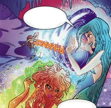 Unla is the only one to be hit by Aisha's attack but Limes and Nazca rush in to cover her and keep the Winx away from Niobe. Unfortunately, the Sirens become so engrossed in their fight against the Winx that they are completely unaware of the Selkies taking Niobe back to the surface.