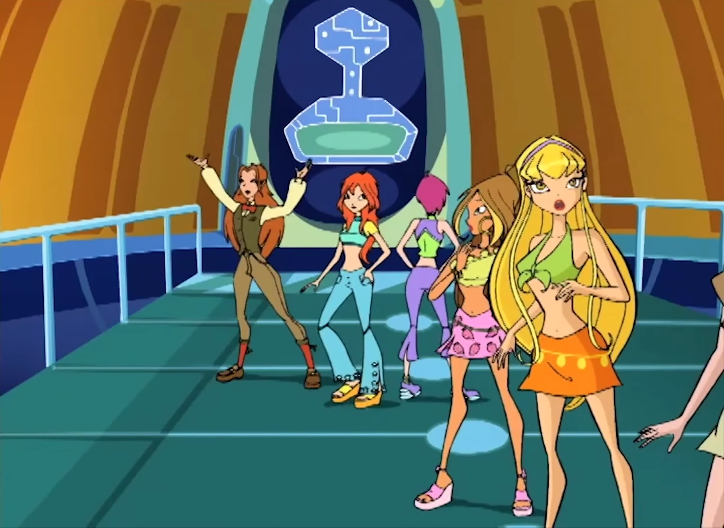- Near the end, when the girls are throwing Bloom up and catching her, Stella is standing by the side with four arms.