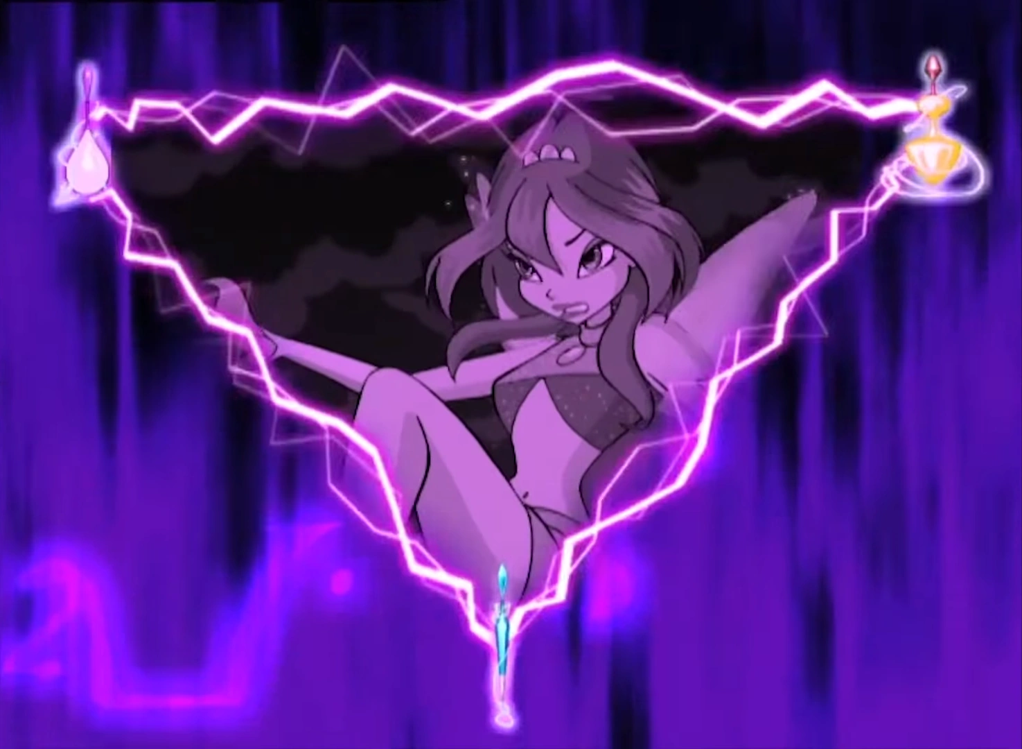 - When the Trix gaze into their vacuums, a clip of Bloom fighting in the future is being displayed.