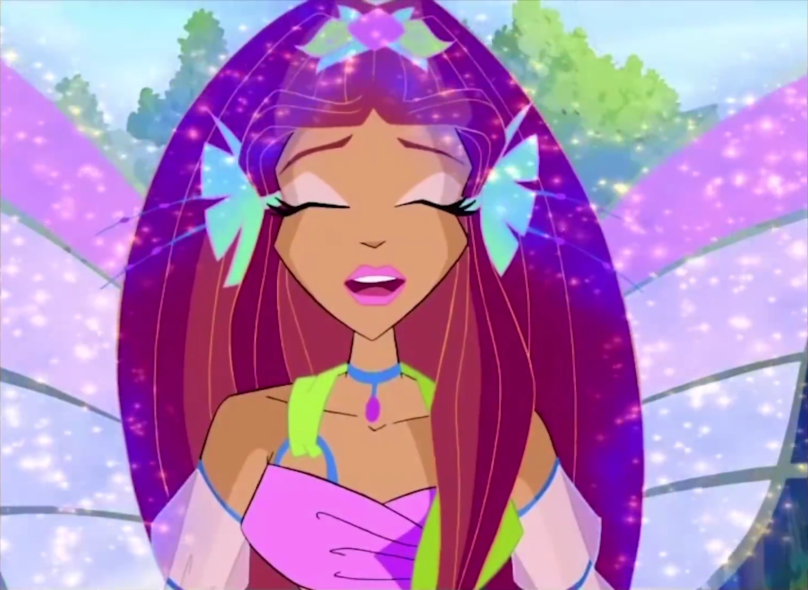 When the group arrives at the waterfalls, the Sprout has wilted greatly and Diana sees no hope. However, the Winx reassure her that it will live. They use their special Sophix powers which heals the forest, thereby restoring the Sprout's life. Just then, Nasser returns with a shovel and charges at the fairies claiming that this is his forest. The tribal leader stops him and knocks the shovel out of his hands and seizes him.