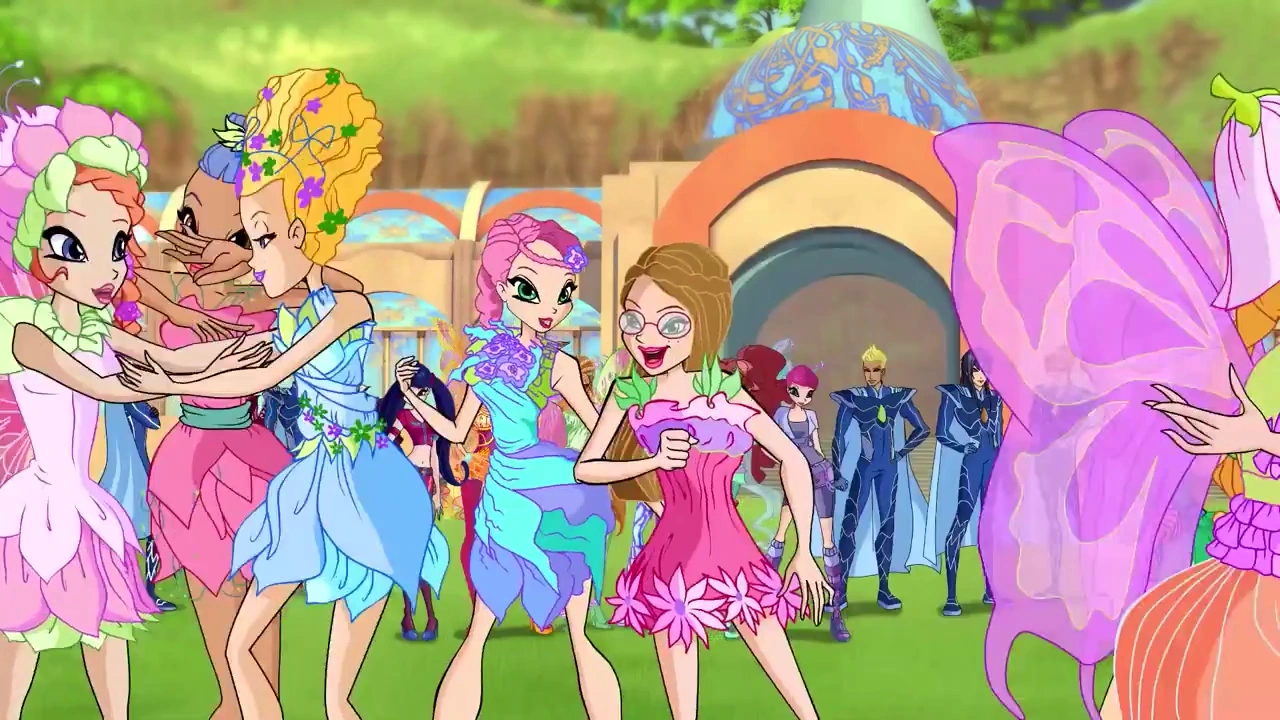 The students of Linphea College celebrate and thank the Winx, Specialists and Paladins. Flora and Miele rejoin and hug, with Flora congratulating and encouraging her little sister. At the end, Miele wipes a way a tear of joy.
