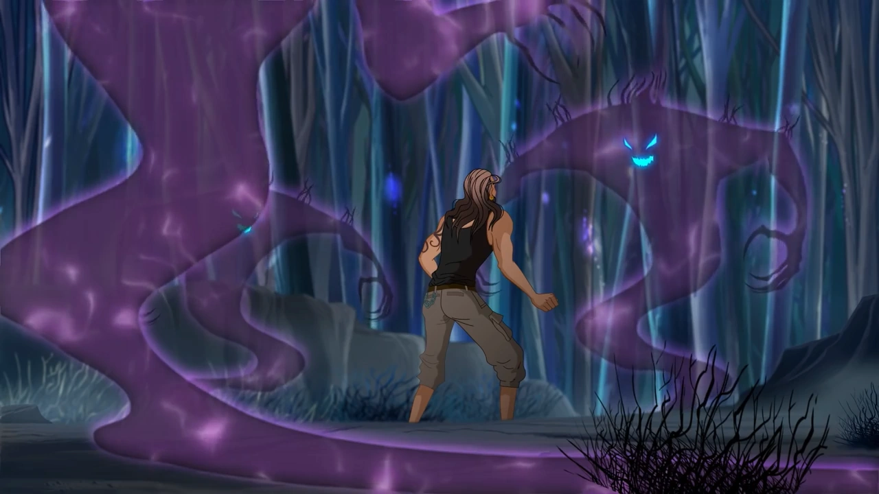 The girls begin to close in on the kidnapper, but are stopped by an octopus monster conjured up by the mysterious man! Thinking quickly, Aisha tasks Tecna with continuing the chase with Matt's kidnapper as she and Stella stay behind to take out the monster, however, the monster turns out to be nothing more than an illusion, causing Stella and Aisha to fall off the roof!