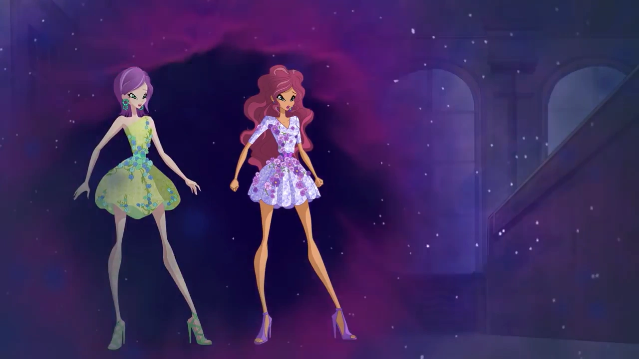 - As Aisha, Stella and Tecna chase after Matt's mysterious kidnapper, the insides of Stella and Tecna's coats and the colored stripes of their catsuits are colored in Aisha's signature sea green instead of their respective colors, orange and purple.